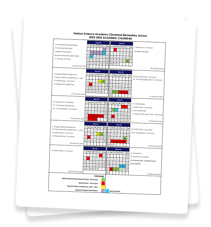 There’s plenty happening at Horizon Science Academy Cleveland Elementary! Check out our calendar to see what we have planned throughout the school year.